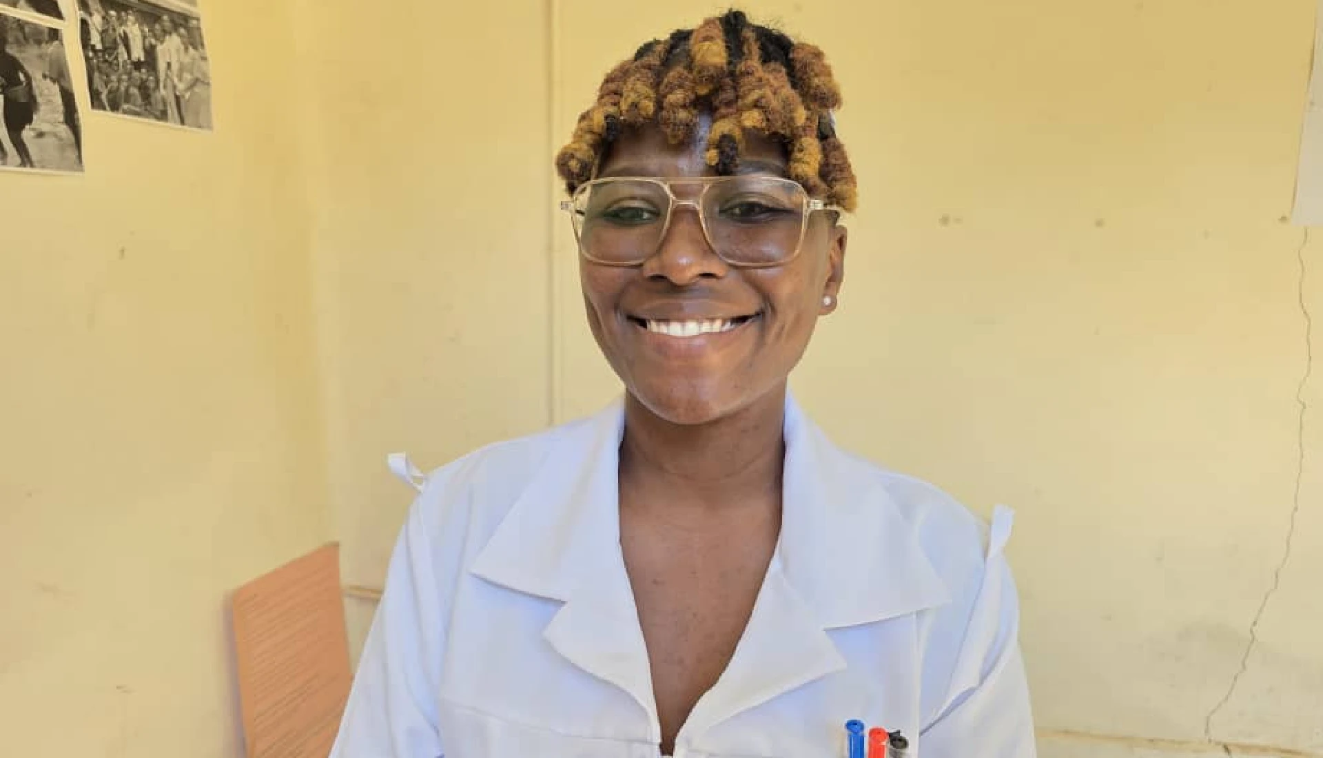 Kabwe inside the office at the health center